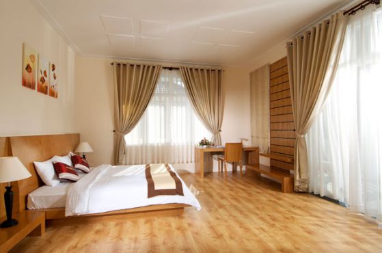 Phòng ngủ đòi hỏi một môi trường trong lành, khô thoáng, an toàn cho sức khỏe nên loại sàn gỗ thích hợp cho phòng ngủ phải có chất lượng tốt. Bạn nên chọn sàn gỗ được sản xuất từ nguyên liệu tự nhiên, không có chất độc hại. Ưu điểm của sàn gỗ công nghiệp là có đặc tính chống chịu nước, chống ẩm mốc để giữ cho nền nhà luôn khô thoáng.